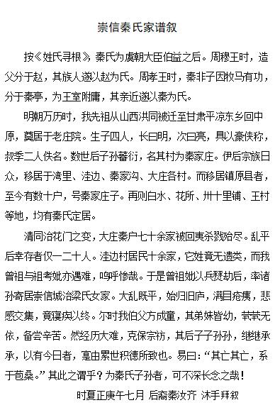 067第三届{爱国孝亲家教家风征文}秦氏家谱