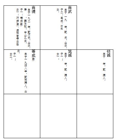 公讳宏专,刚直严肃,勤俭恭谨,务农为业。生平衣不求美,食不求精;爱人如己,恶恶如仇;贫不自馁,富不自矜;虽甚刚直,人多爱重。至今犹以和睦乡邻见称。配赵孺人,柔顺勤俭,善承夫意,同甘共苦,偕理家务,家道勃兴。卒以佃佣之家,丰衣足食,以终其身。子一,早逝,大伤厥心,遂以侄继福承嗣。