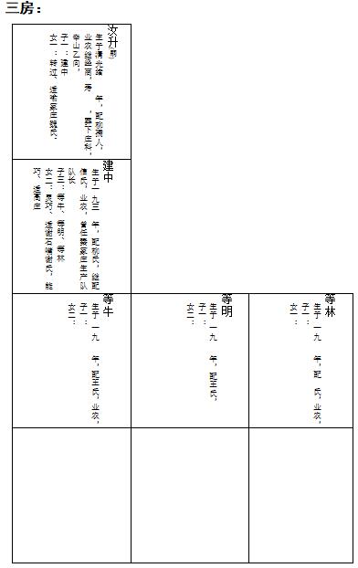 汝升业农,兼懋迁有无。民国十九年,因瘟疫没于平凉。妻柳氏冰雪其志,柏舟其操,历尽艰苦,抚养一双儿女,男曰建中,女适魏氏,皆以仁义孝慈见称。