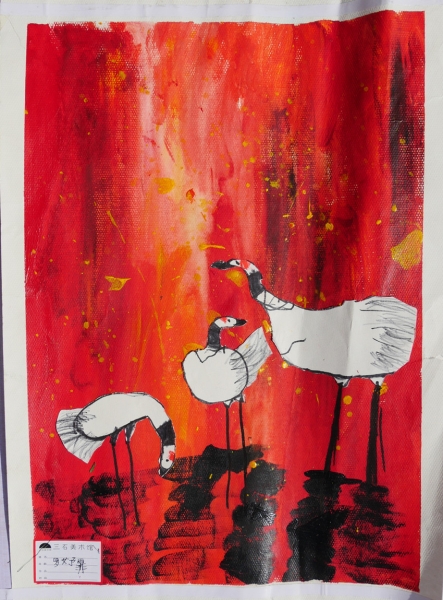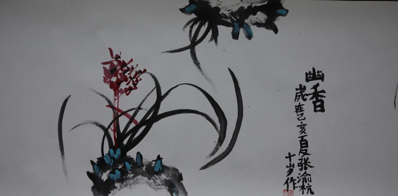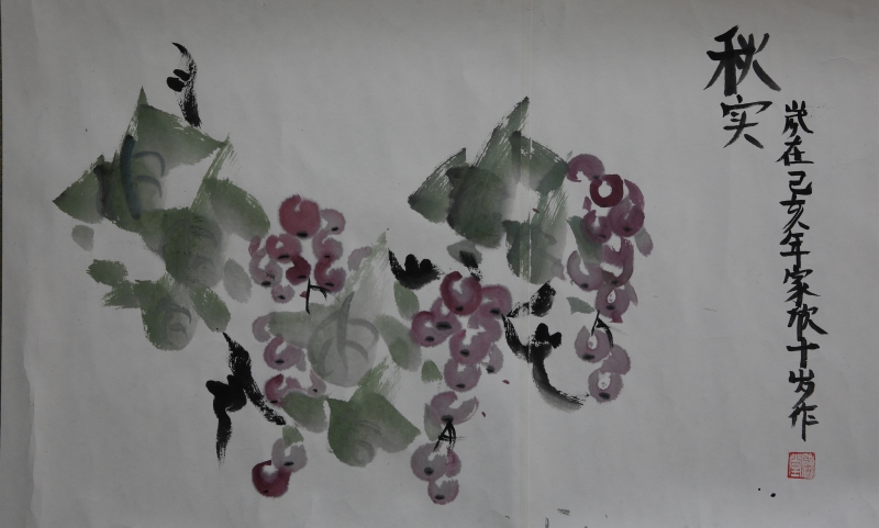 他们在众目睽睽之下,挥毫泼墨,胸有成竹,气定神闲,毫不慌乱,画出了虾、兰草、荷花、葡萄、竹子、菊花、葫芦等传统题材的国画作品,虽然还很幼稚,但其中有几幅构图清晰,用笔正确,意趣盎然。