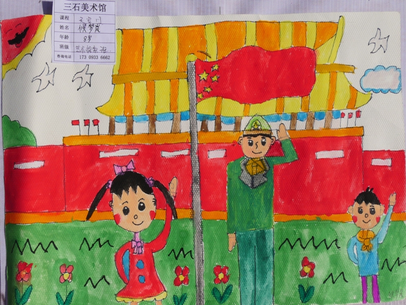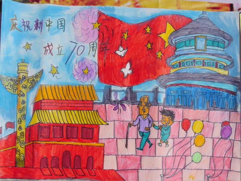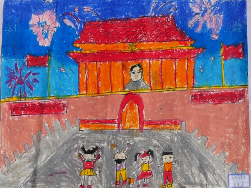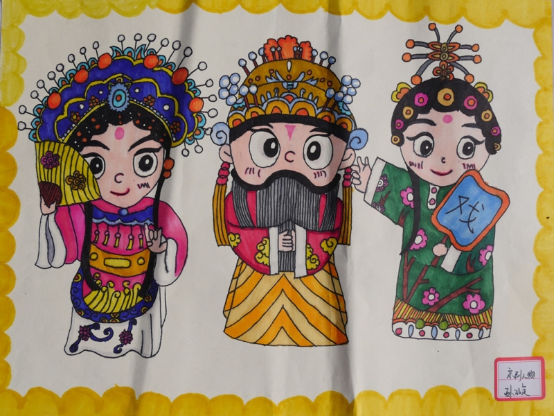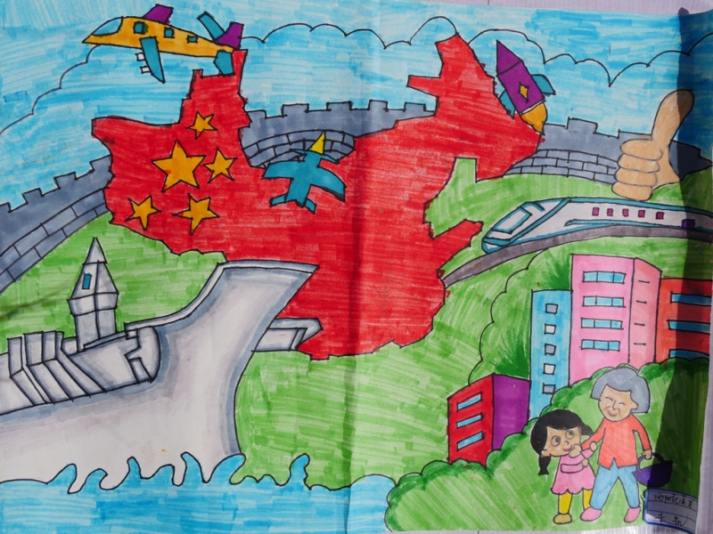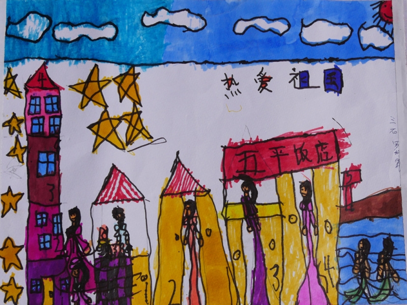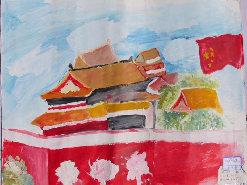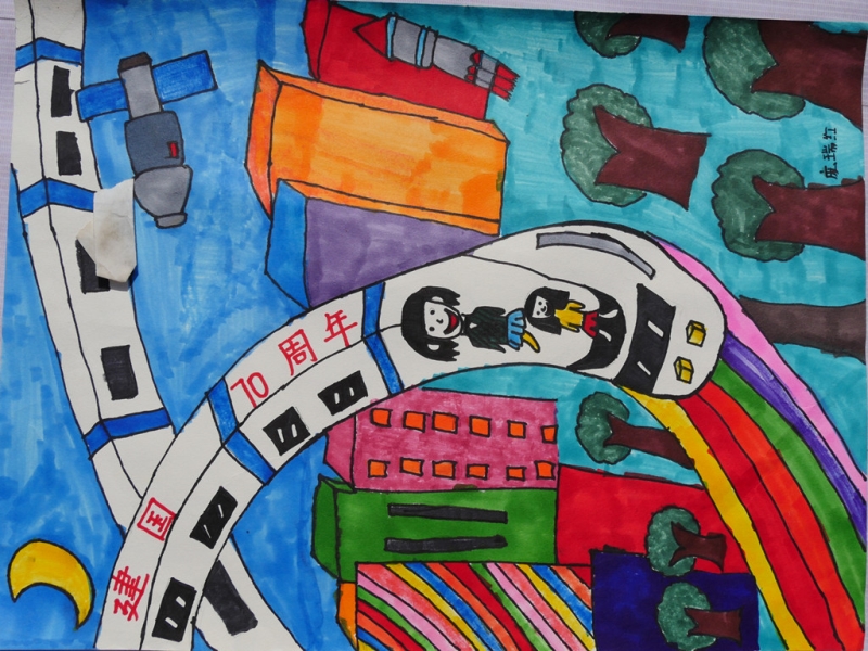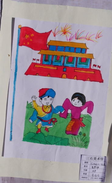 其他绘画作品,除了直接表达庆祝国庆的画作,还有京剧人物、中国梦等内容的画作,想象丰富,并明显具有少儿特点。