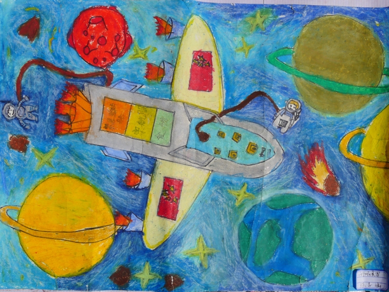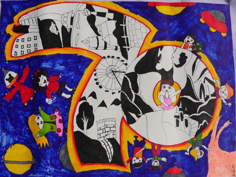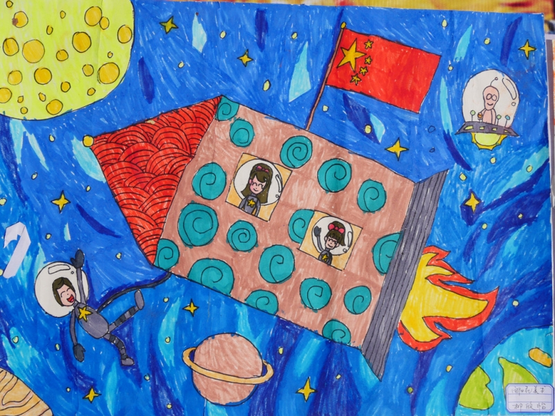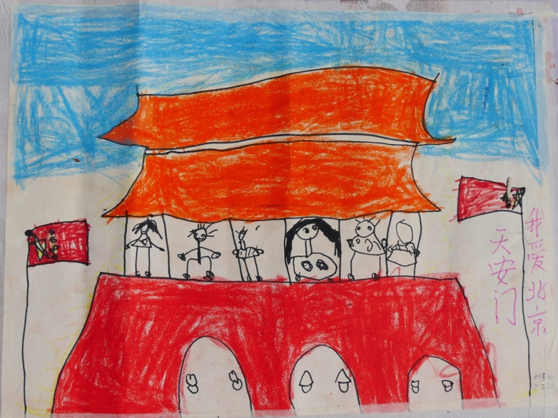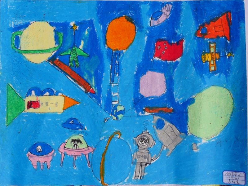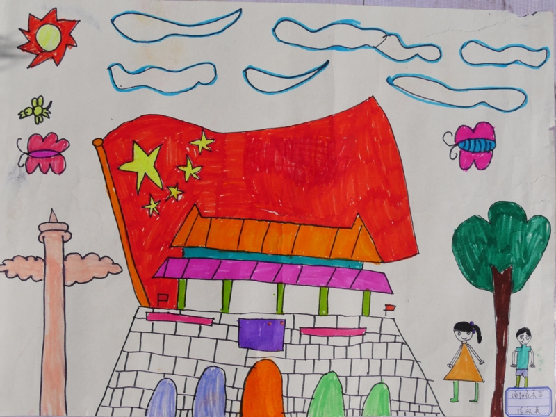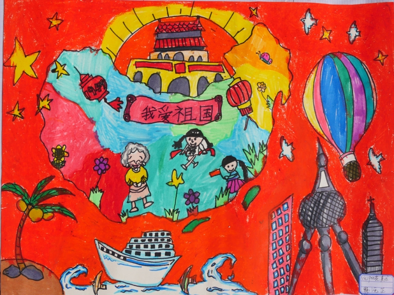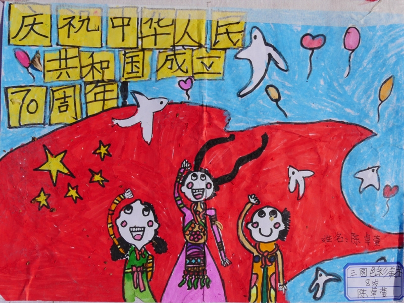 其他绘画作品,除了直接表达庆祝国庆的画作,还有京剧人物、中国梦等内容的画作,想象丰富,并明显具有少儿特点。