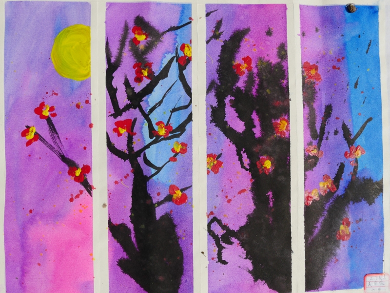 这次推出的国画作品,是小画家们在少儿书画大赛的现场进行创作的。