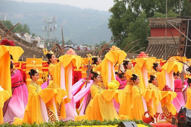 鼓、号、钟、罄和鸣,序曲“曦开迎圣”拉开了乐舞告祭的序幕,“盛世颂祖”“厥功大德”“万代敬仰”“福佑中华”等乐章依次恢宏呈现,追思赞颂、拜祭祈福,祝愿中华文明万世永续,伟大祖国繁荣昌盛,各族人民幸福安康。乐舞告祭后,王正伟、陈镇湘、林铎、唐仁健、欧阳坚等缓步来到伏羲庙,敬献花篮,行鞠躬礼,瞻仰伏羲圣像。
