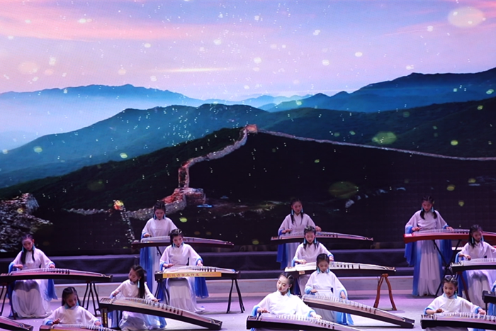 第二单元播放视频《大爱与孝心的述说》,演出朗诵《父爱如山母爱是河》、舞蹈《我爱你中国》、古琴演奏《平沙落雁》、书法表演、剪纸表演,颁发了“爱国孝亲”征文比赛奖项。