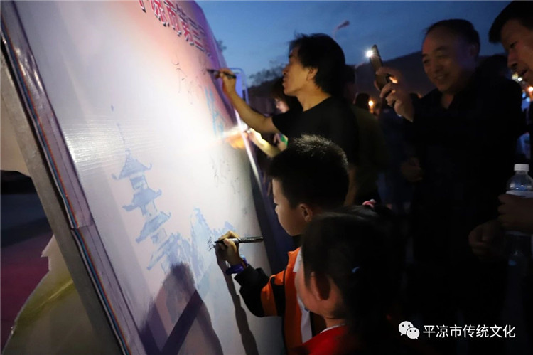 第二阶段,举行了平凉市第三届“全民爱国孝亲”行动启动仪式和文化节目展演,由平凉市传统文化促进会党支部书记陈秀山宣读了《第三届“全民爱国孝亲行动”倡议书》,向全社会公众发出了积极开展以“爱国孝亲”为主题的社会实践、家教家风征文、走基层宣传宣讲、网络作品联征联展、少儿书画比赛、颁奖典礼等六项系列活动。市社科联副主席李明刚宣布平凉市第三届“全民爱国孝亲行动”正式启动。接着,参会人员和其他市民踊跃在孝心墙上签字留念,表达为国尽忠、在家尽孝的决心与情怀。随后,平凉模特艺术协会等承办单位表演了《国家》《我和我的祖国》等精彩文艺节目。