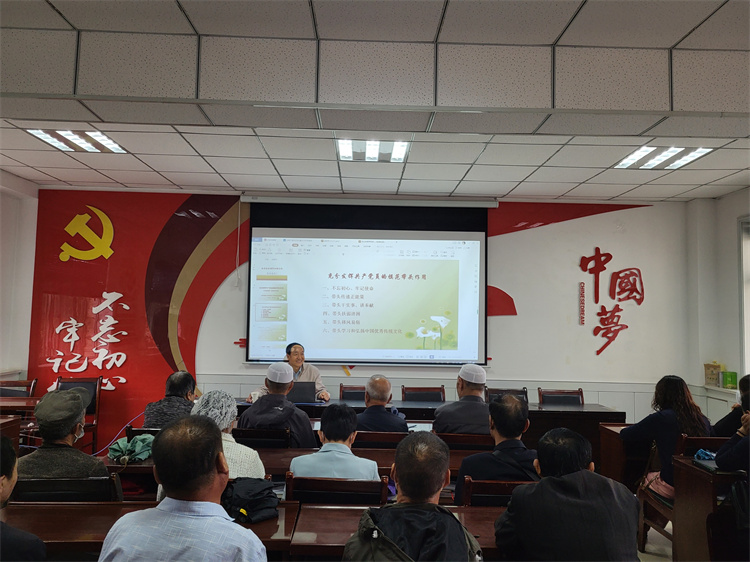 在欢庆中国共产党建党102周年之际,应崆峒区东关街道宝塔社区党委邀请,平凉市传统文化促进会副会长、平凉“美德讲堂”讲师秦荣光副教授,于7月3日下午赴宝塔社区讲党课。社区党委书记刘银辉主持了本次讲座,社区老党员代表和部分党员干部共30多人参加了本次党课学习。