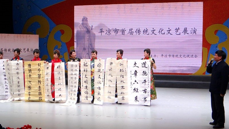 4月15日下午,平凉市传统文化促进会“首届优秀传统文化高峰论坛暨传统文化展演活动”在平凉电视台演播大厅隆重开坛。全国著名学者、苇杭书院山长杨汝清先生,平凉市传统文化促进会会长秦治,平凉市电视台原台长、市传统文化促进会顾问吴烨;平凉市纪委派驻市人社局纪检组长、市委党校兼职教授朱国勇;平凉职业技术学院副教授、市传统文化促进会副会长秦荣光等专家学者首次在演播大厅展开高峰论坛。平凉市直相关部门领导、市职业技术学院学生、平凉市传统文化促进会全体会员和邀请的外地来宾、学术顾问、媒体记者及其他人员200多人现场聆听、观看传统文化文艺节目展演。